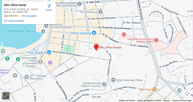 “Muito bom, atendimento impecável, pessoas agradáveis e localização segura. Não dá para ir aos lugares a pé por conta dos travestis e mendigos do centro e a rua é meio deserta mas o hostel é muito bom. Atendeu minha necessidade e superou minhas expectativas. Quando precisar estar em Niterói com certeza voltarei lá mais vezes.”
